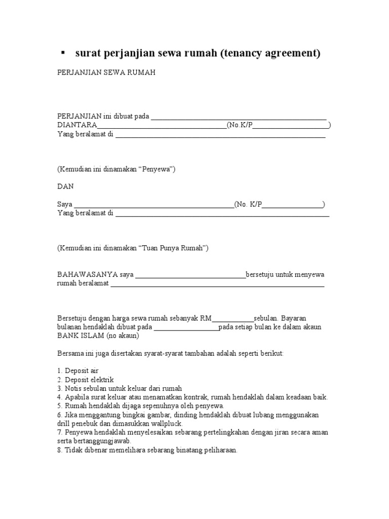 Surat Perjanjian Sewa Rumah Pdf